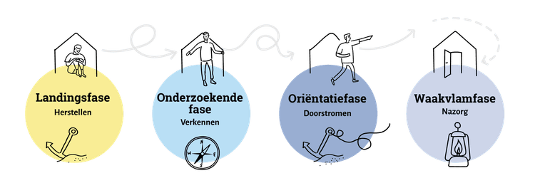 In het verloop van onze begeleiding bij autisme zijn een aantal fases te onderscheiden. De fases zijn niet vaststaand maar lopen in elkaar over en zijn per kind/jongere verschillend. De fases volgen de ontwikkeling van het kind/de jongere zoals deze op dat moment is.