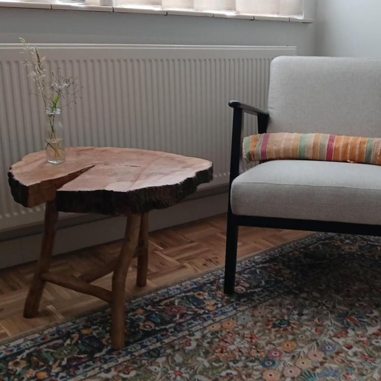 Salontafeltje: Een mooi stevig bijzettafeltje voor naast de bank of bij een fijne zithoek. De tafel word gemaakt van een grote plak hout met poten. Het blad heeft een lengt van 60 tot 70 centimeter. Plakken kunnen ronde schijven zijn of rechthoekig. Wat het aanbod is zal in overleg zijn na de aanvraag. De kosten van deze tafel is op aanvraag. Afhankelijk van het type hout en formaat van de plak. De prijs kan liggen tussen de €50,- en €80,-