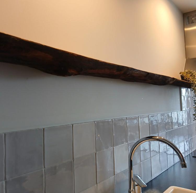 Wandplankje: Voor de keuken, de (baby)kamer, woonkamer of het toilet. Een mooi wandplankje van één stuk hout. Bovenop een mooi gladgeschuurd oppervlak, onderop nog het robuuste schors. Alle plankjes worden in de vaste lengte van 70 cm gezaagd. De plankjes worden voorzien van gaten voor het ophangen met twee blinde plankendragers. De plankjes zijn inclusief dragers €40,-.